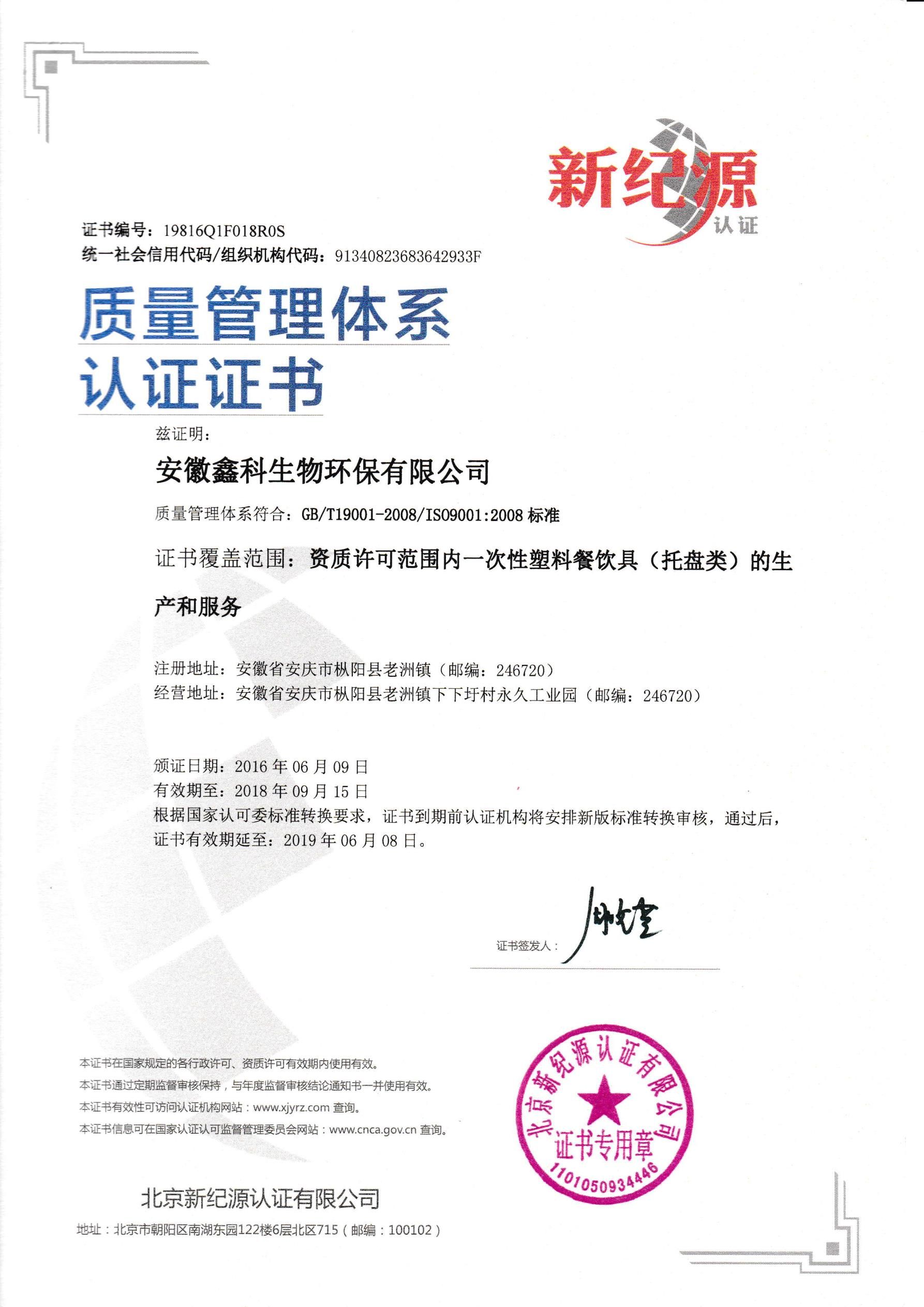 質量管理體系證書